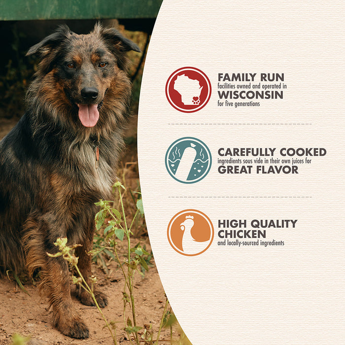 Each Bonnihill Farms™ by Fromm® ChickiBowls is a hearty mix of chicken, carrots, potatoes, and peas carefully cooked sous vide for great flavor.