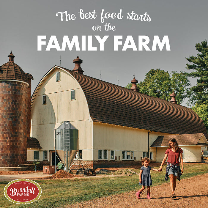 At Bonnihill Farms, goodness starts at home. When we set out to do the best in fresh frozen dog food, we went back to our roots and five generations of food and farming. From barn to bowl, we carefully watch every step, and create delicious, nutritious, and hearty family food sure to nurture and delight the furry, four-legged members of your family.